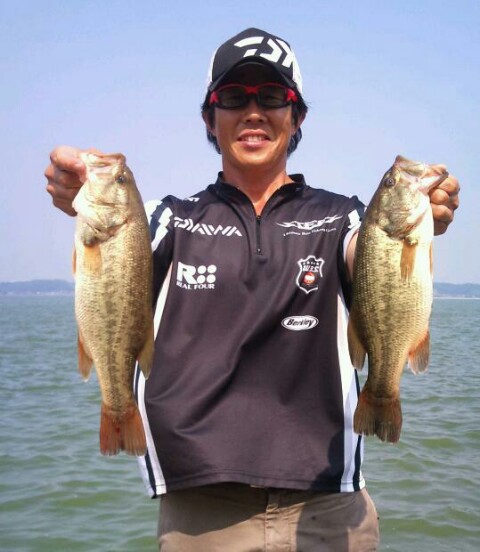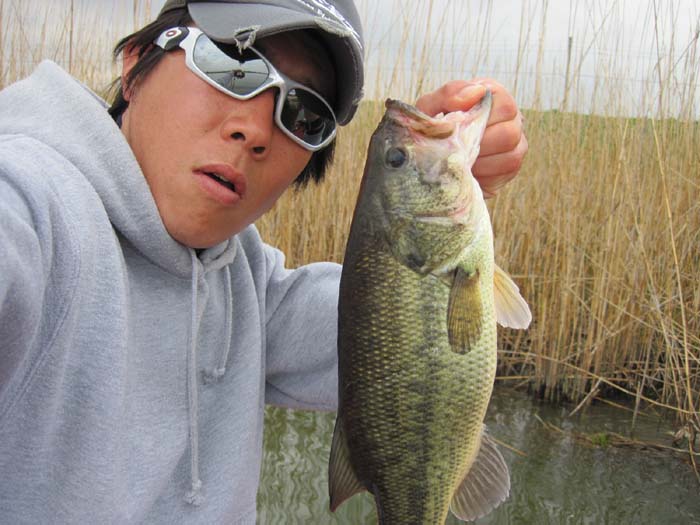 例年通りにシャローでウロウロしているバスを確認、釣り方もいつも通りって感じであった。