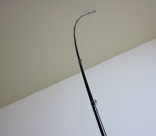 今回のロッドは、カーボン含有率を抑えたグラス素材特有の粘りを重視。
